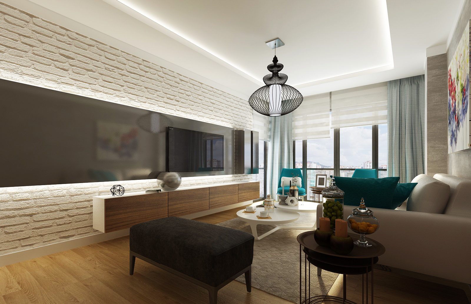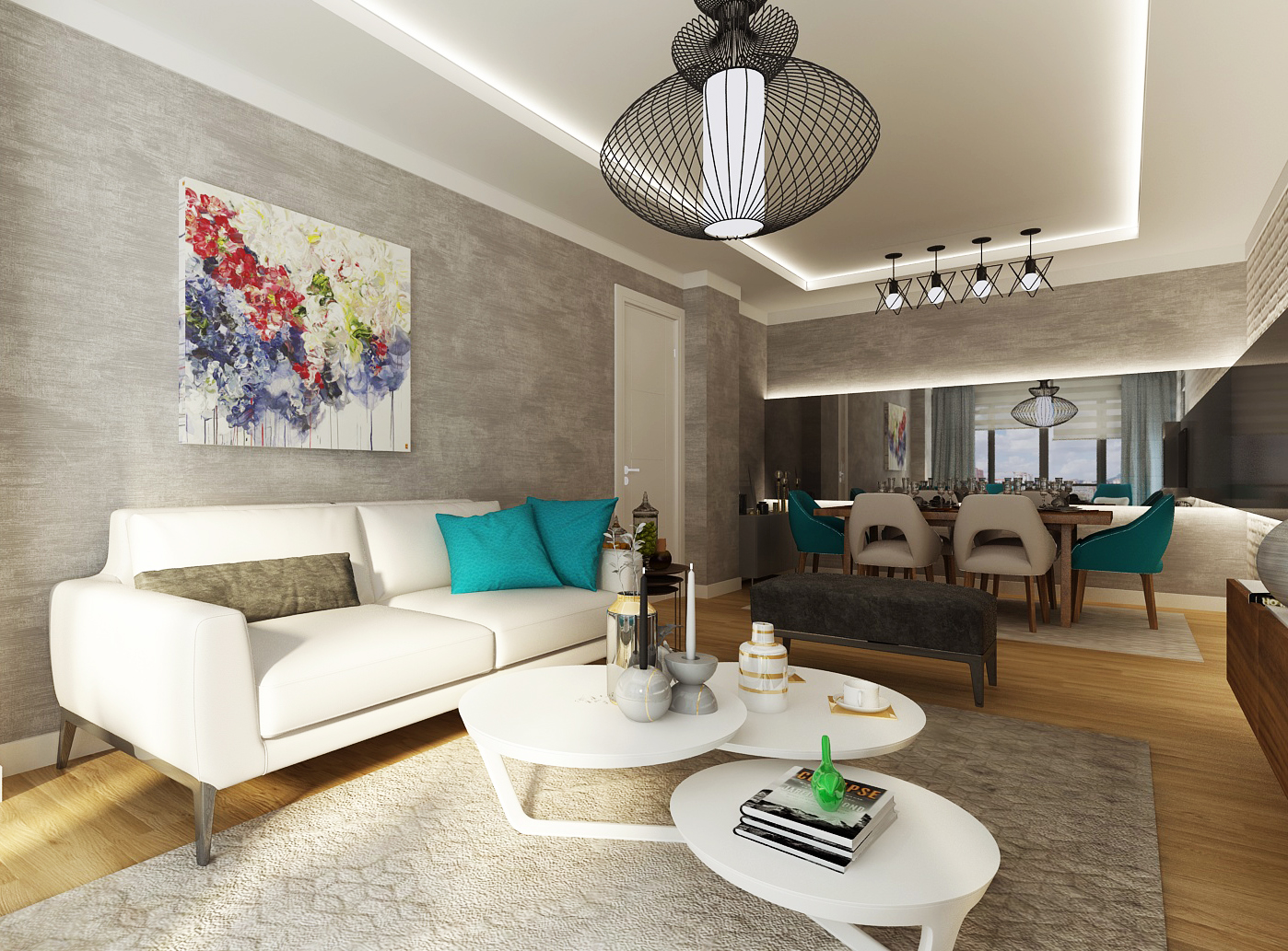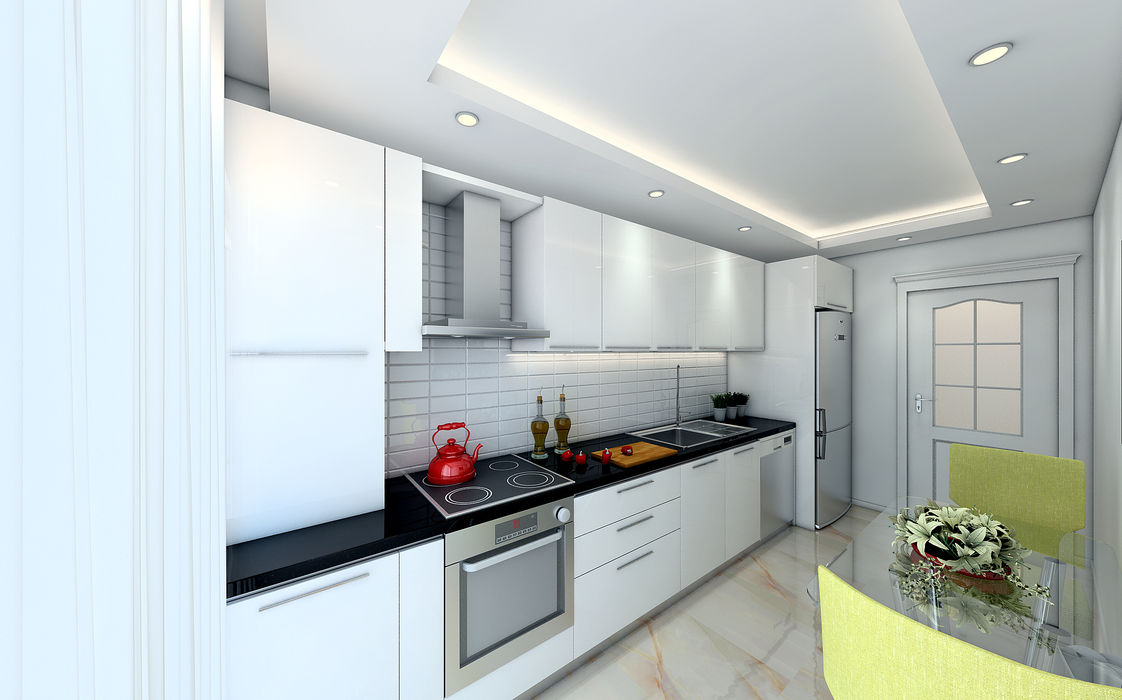 Her dairede bayaz eşya ve ankastre seti, balkonlu.